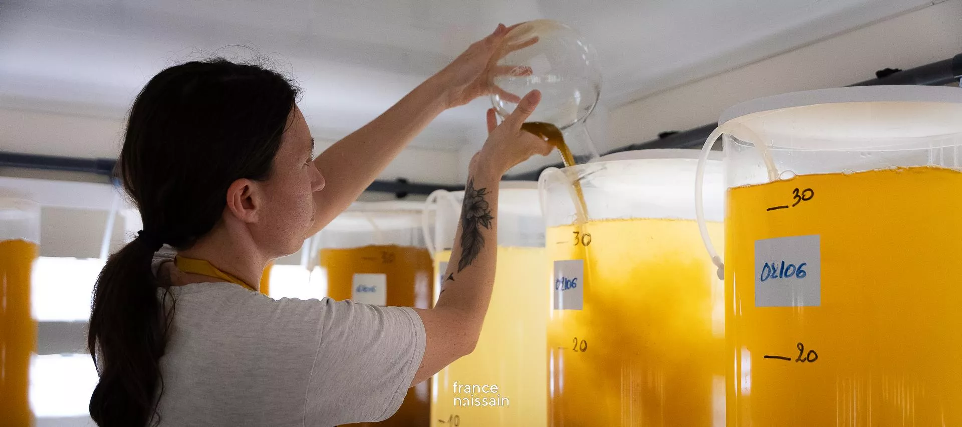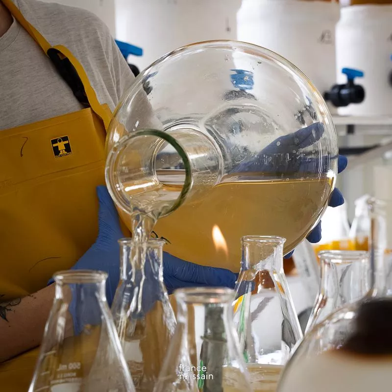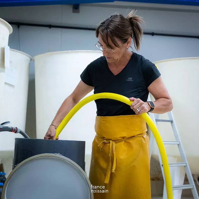 Here is where our oyster larvae are born, and after evolving into spat, they are nurtured by our teams in our sea farms. This stage is crucial for the quality of our oysters, as it determines their growth and subsequent development.